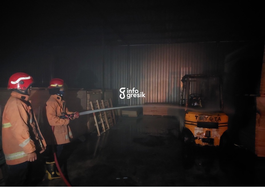Kepala Dinas Pemadam Kebakaran dan Penyelamatan (Damkarla) Kabupaten Gresik, Suyono, melalui Perwira Piket Faical Irhansyah, menyatakan bahwa laporan kebakaran diterima pada pukul 20.05 WIB. Pemilik gudang, Slamet, melaporkan kejadian tersebut setelah mendapati forklift miliknya sudah dalam kondisi dilalap api saat area usaha sedang sepi aktivitas.