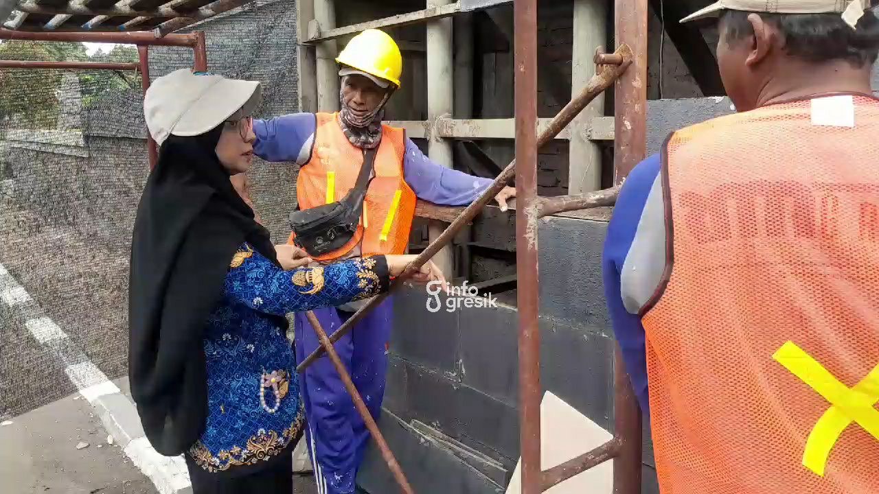 Subaidah menjelaskan bahwa saat ini tim perbaikan dari DLH Gresik sudah mulai melakukan pemasangan batu alam dan merapikan dinding yang rusak.