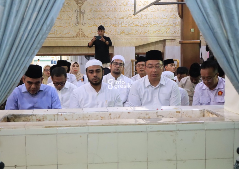 INFOGRESIK – Ketua MPR RI Ahmad Muzani melakukan kunjungan religi ke Kabupaten Gresik dengan berziarah ke makam ulama kharismatik Habib Bakar Assegaf di kompleks Masjid Jami Gresik, Sabtu (18/4/2026). Selain memanjatkan doa bagi keselamatan bangsa, rombongan juga menyempatkan diri mengapresiasi kekayaan kuliner lokal.