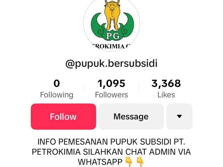 Selain @pt.petrokimia.id, juga ada akun TikTok lain yang menawarkan pupuk bersubsidi untuk petani, yaitu @pupuk.bersubsidi, dan akun-akun palsu lain di TikTok, Facebook, Instagram, dan medsos lainnya. Ia pun berharap masyarakat selalu memverifikasi informasi sebelum memercayainya. Serta mewaspadai akun media sosial yang mengatasnamakan Pupuk Indonesia maupun anper, karena bisa menjadi modus penipuan.