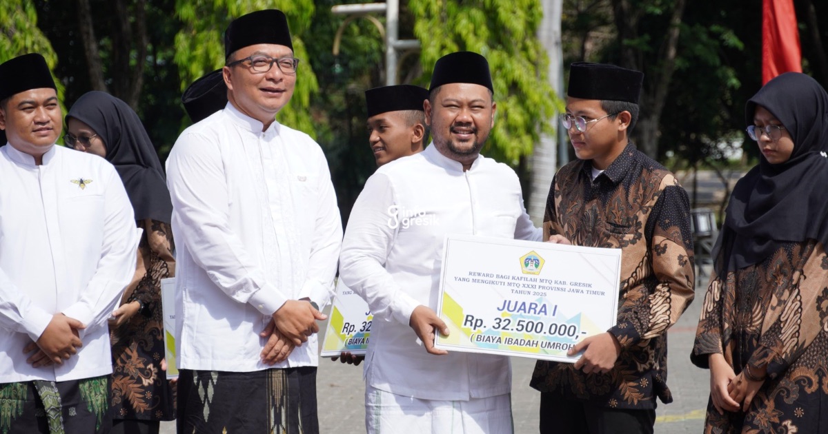 INFOGRESIK — Pemerintah Kabupaten Gresik memberikan reward sebesar Rp813 juta kepada para kafilah Musabaqah Tilawatil Qur’an (MTQ) Kabupaten Gresik yang berhasil meraih Juara Umum MTQ Provinsi Jawa Timur 2025 di Kabupaten Jember.